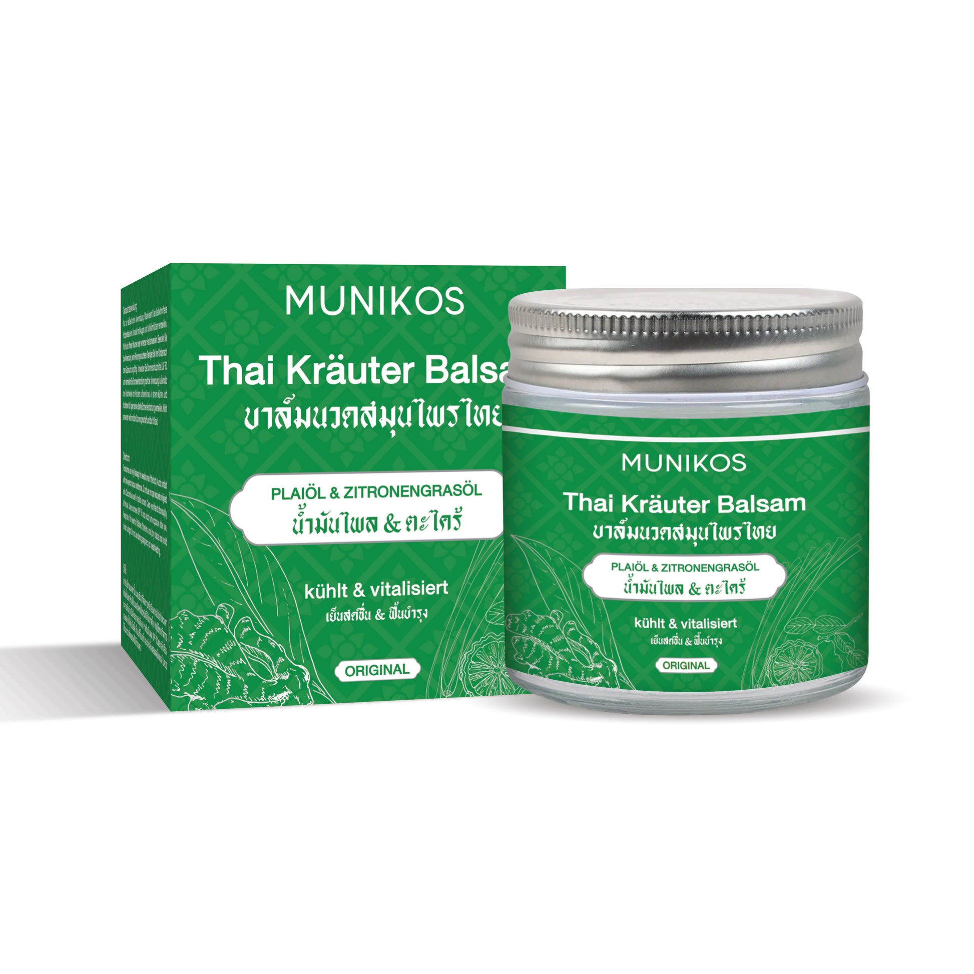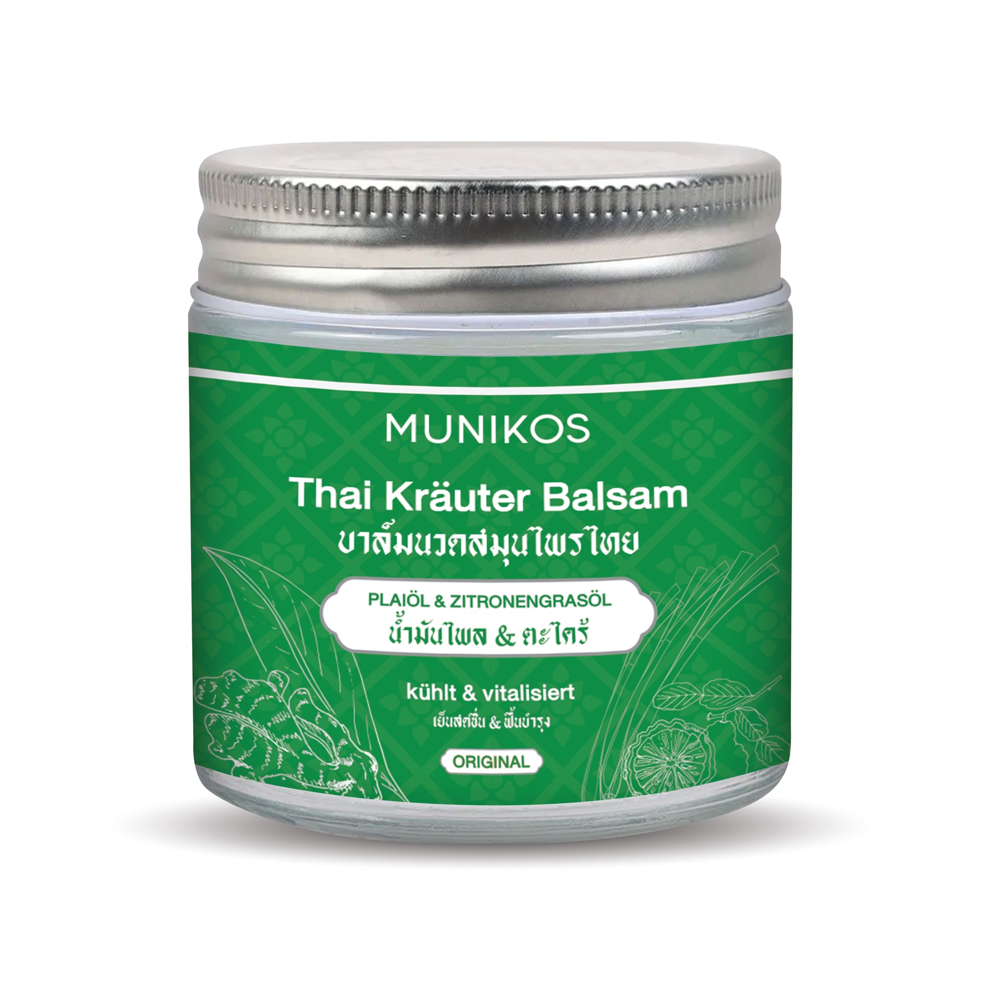 Original Thai Kräuter Balsam entwickelt nach traditionellem thailändischen Kräuterwissen. Die 100% natürlichen ätherischen Öle aus Plai (thailändisches Kraut) und Zitronengras wirken perfekt mit erfrischender Kühle um körperliche Verspannungen zu lösen sowie müde Haut zu regenerieren.